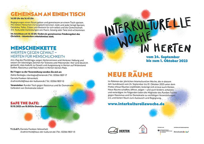 Vom 24. September 2023 bis zum 01. Oktober 2023 findet die Interkulturelle Woche in Herten unter dem Titel "Neue Räume" statt.